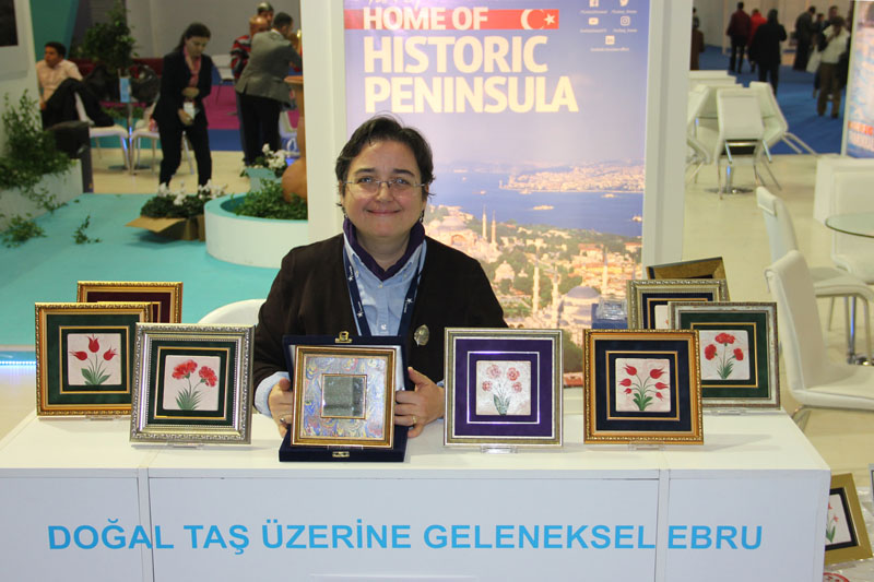 Ebru sanatının özelliği gereği ürünlerinin eşsiz olduğunu vurgulayan Saadet Erciyas, “Ebru sanatı uygulandığı yüzeye yalnızca bir kere aktarılabiliyor. Bugüne kadar kağıda, kumaşa, keçeye, cama uygulanan bu eşsiz sanat, kadın sanatçılarımızın yoğun emeğiyle artık taşa da uygulanıyor” dedi. “Estetik Ebru” projesiyle butik tarzda niş bir ürün oluşturduklarını, Türk doğaltaşına geleneksel ebru sanatını uygulayarak eşsiz kültürel ürün niteliği kazandırdıklarını anlatan Saadet Erciyas, “Yaptığımız ürünlerin arkasına ‘Türkiye’de üretilmiştir’ yazdık gururla” diye konuştu.